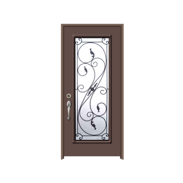 This wrought iron glass entry door offers the best in terms of elegance, durability, and performance. The earth color of the door coupled with the intricately detailed wrought iron insert make for a pretty picture. Choose from different types of glass panels depending on the level of privacy you desire.